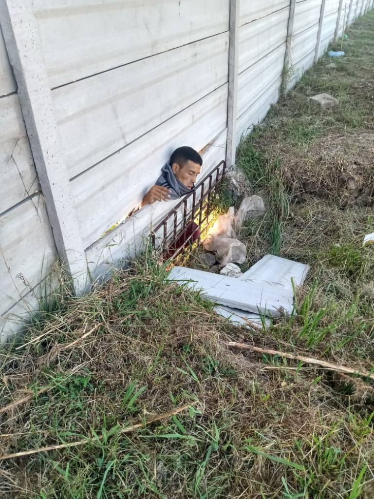 La imagen habla por sí sola: el individuo qued´ño atorado en medio del muro perimetral de cemento y perdió la vida de manera instantánea. Su cabeza y parte del torso quedaron dentro del barrio privado, ante la mirada horrorizada de vecinos que, con sus hijos, pasaban por el lugar.