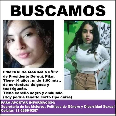La menor, tal cual publicaron parientes y allegados de Esmeralda, mide 1,60 metro de estatura, es de contextura delgada y tez trigueña. Tiene cabello negro y ondulado, según manifestaron familiares, a la altura de los hombros. Al momento de abandonar su casa vestía jean negro, remera blanca de manga larga, zapatillas blancas, campera negra y cargaba una mochila negra y blanca.
