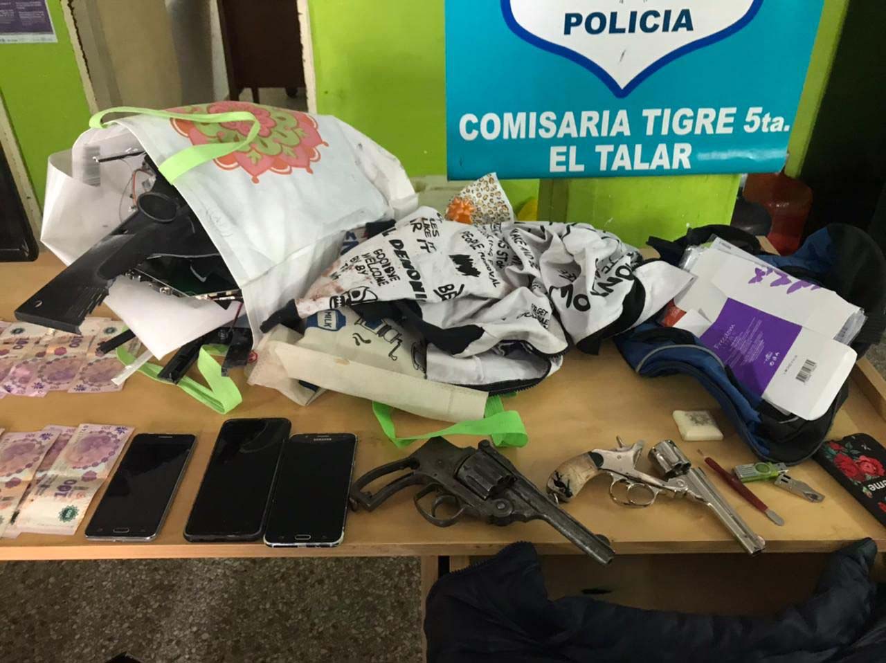 Según las fuentes, dentro de un bolso la Policía encontró dos revólveres calibre 32, uno de ellos con aparentes manchas de sangre en el caño.