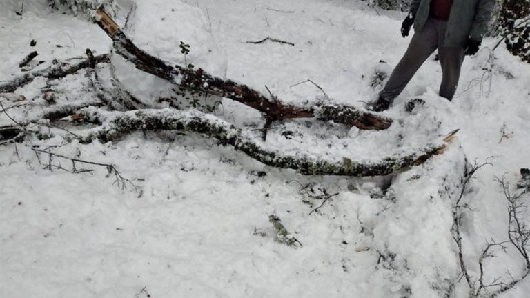 En ese momento, producto del peso de una importante cantidad de nieve acumulada, se desprendió de un árbol una pesada rama y cayó sobre los niños.