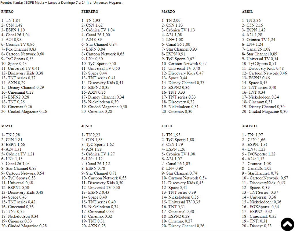 El rating de los canales de cable de la ciudad de Buenos Aires y el conurbano (único lugar donde se mide) mostró que pese a la inversión de grandes sumas, la fusión de gigantes y otras yerbas, lo que define, siempre, es el contenido. El año 2021 cerró, entonces, con la consolidación del canal de Clarín, Todo Noticias, con más audiencia que nunca, la caída pronunciada del oficialista C5N y la ratificación en el podio del histórico Crónica TV,