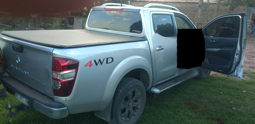 Fuentes policiales informaron que personal del destacamento del lugar fue alertado por la presencia de dos cuerpos dentro de una camioneta Renault Alaskan.