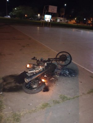 En cercanías se halló también una motocicleta de 110 cilindradas, incendiándose.