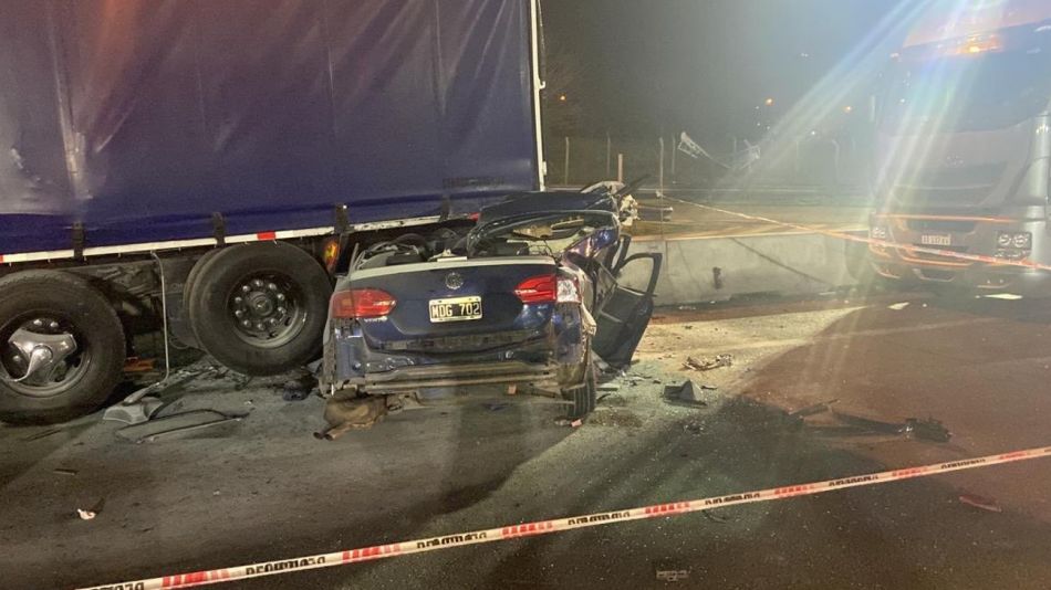 Fuera de control, el auto sospechoso impactó contra un camión marca Mercedes Benz que estaba detenido en la banquina.