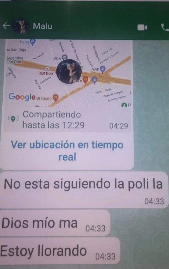 «Ella me mandó un mensaje a las 4.30: ´Mamá, estoy llorando. Nos persigue la Policía y no sé por qué´. No supe nada más. Vi la ubicación por la aplicación y acá estoy. Mi hija había ido a tomar algo, era la primera vez que salía con ese chico. Tengo que ver si es uno de los muertos», dijo a la prensa una la mujer, quien resultó ser la madre de la joven Chiocconi.