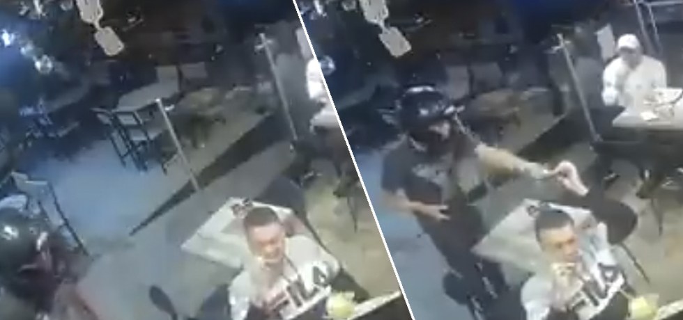 VIDEO | Entraron a robar en restaurante, entregó su celular y siguió comiendo como si nada